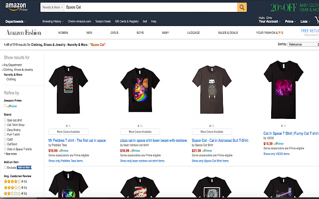 搜索任何关键字并显示 ALL Merch By Amazon 列表