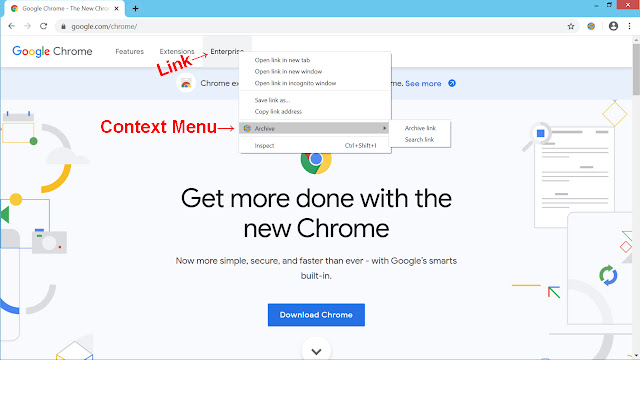 还包括指向存档或搜索的链接上下文菜单、指向搜索的页面上下文菜单。