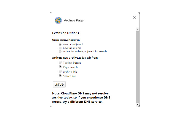 2. CloudFlare DNS 可能无法解析 archive.today,因此如果您遇到 DNS 错误,请尝试其他 DNS 服务。