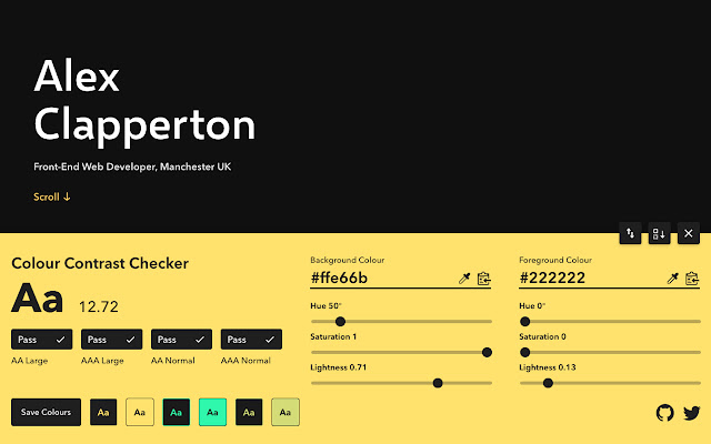如果这还不足以满足您的需求,您可以在 https://colourcontrast.cc/ 查看网页版本,其中包含一些额外的好东西。