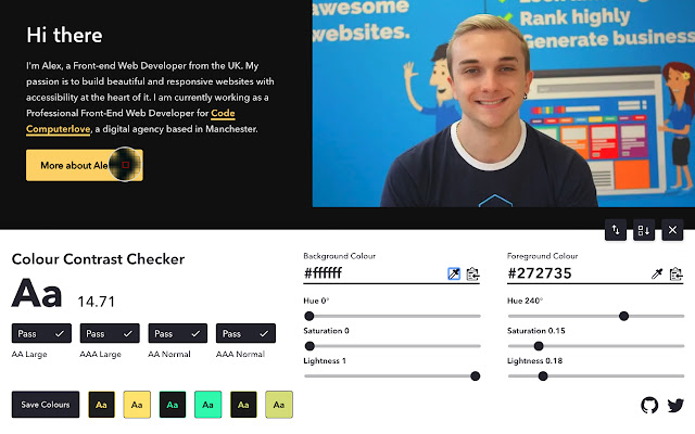 通过使用此工具,您将能够确保您的颜色组合之间具有足够好的对比度,以满足 AA 级 WCAG 标准。