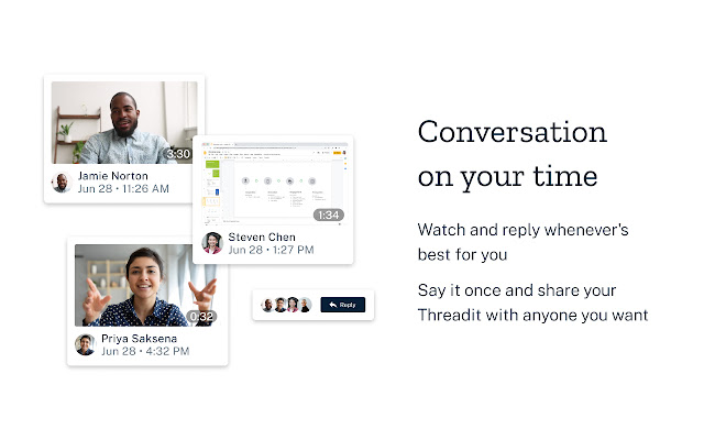 下次您需要发送项目更新、举办培训或演示演示时 - 发送 Threadit。重新控制您如何以及何时使用这种新的视觉方式进行沟通,以便在您的时间进行协作。