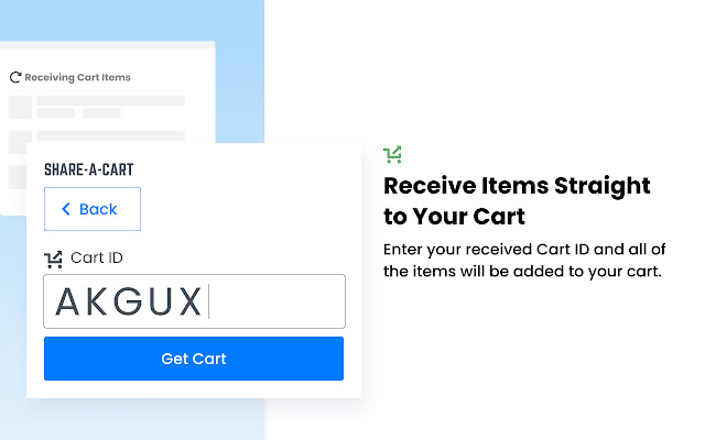Share-A-Cart 是与其他人分享您的亚马逊购物车内容的最简单方法!不再将商品从购物车移动到愿望清单和向后移动,只需“创建购物车 ID”即可通过短 ID 代码将购物车直接发送给您的朋友。然后使用 ID 代码从任何地方以及与您共享此代码的任何人加载您的购物车。