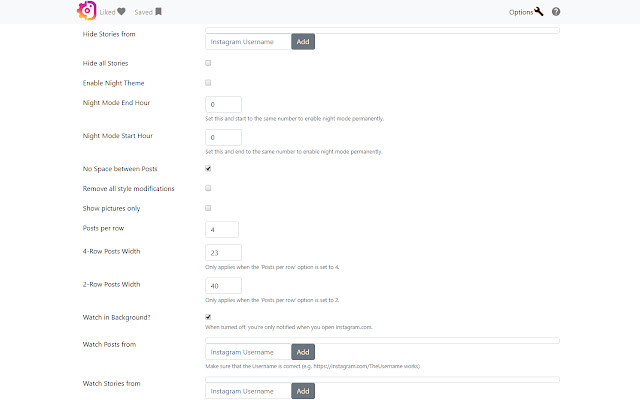 Instagram.com 的布局未针对桌面进行优化。此扩展程序改进了这一点。