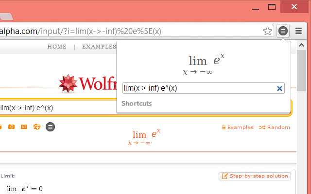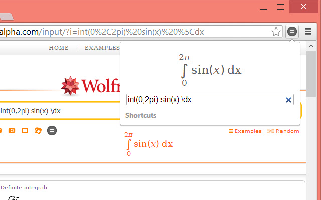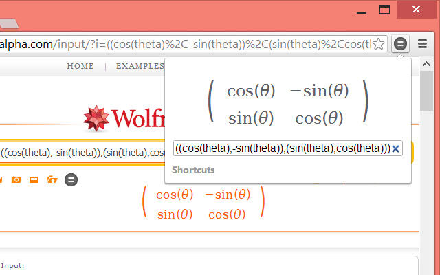 您可以通过单击页面上的快速方程式图标直接在 WolframAlpha 网站上使用扩展。