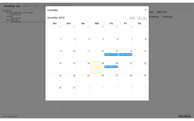 “日历视图”功能已从版本 3 中发布。如果您的思维导图中有一些“YYYY/MM/DD”或“YYYY/MM”格式的项目,它们将在日历视图对话框中呈现为事件。