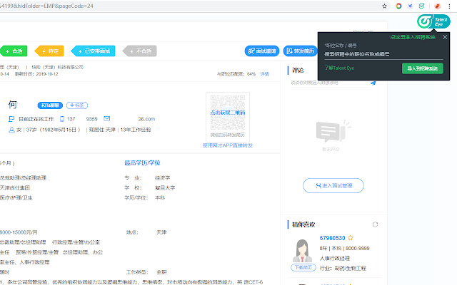 Talent Eye是北森旗下人才管理招聘平台推出的一款招聘工具,可供用户将北森招聘系统内的职位发布至各大招聘网站,在招聘网站上查看的简历,也可通过此工具便捷的导入至北森招聘管理系统。