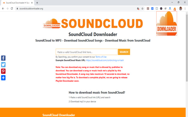 该网络应用程序允许用户免费从 SoundCloud 网站在线下载音乐。用户可以下载发行商允许的那些音乐曲目。