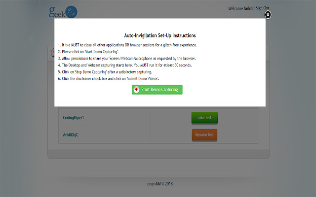 此扩展程序用于自动监考远程位置的候选人尝试的招聘测试。这些测试是通过申请人.geeekassess.com 进行的。在开始测试之前,考生必须允许网络摄像头捕获和屏幕捕获,以便系统可以检查考生在尝试测试时是否存在任何类型的违规行为。此扩展专供门户网站申请者.geeekassess.com 使用。母网站是 www.geekqs.com。