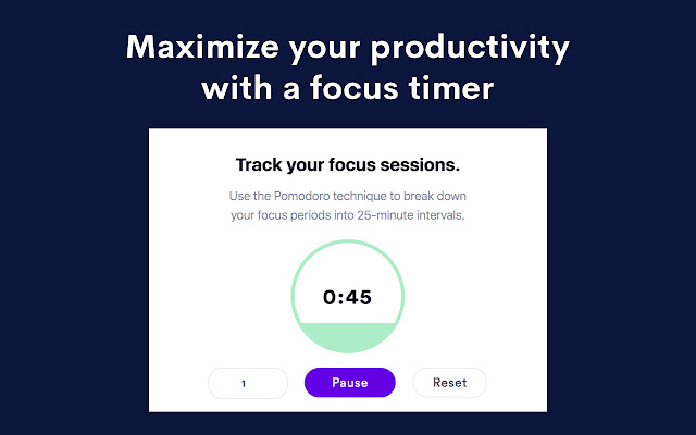 一个简单、设计精美的计时器可帮助您跟踪您的注意力并帮助您保持正轨。如果您想使用番茄钟技巧,请以 25 分钟的专注间隔为目标,但您可以根据自己的日常习惯随意自定义计时器。番茄钟计时器很有效,多年来一直是一种行之有效的专注方法。