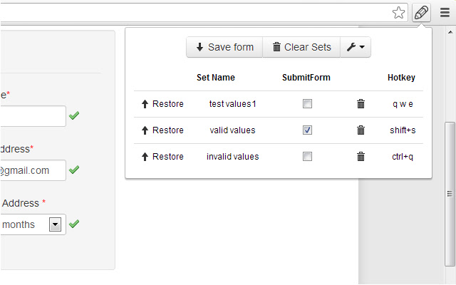 Еxtension 允许自动填写表格以进行测试。您可以分别为任何 paga 存储多个 pset 值,并使用热键触发它们