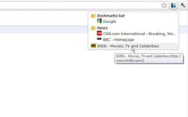 此扩展程序在右上角(“三点”设置按钮旁边)向 Chrome 添加了一个按钮。当您单击该按钮时,您将获得一个书签树,其中包含您可以通过单击打开和关闭的文件夹。一个简单的非侵入式滑动动画应用于文件夹的打开和关闭。
