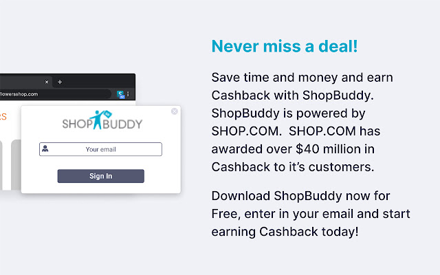 不错过任何交易!使用 ShopBuddy 在线购物可节省时间和金钱并赚取现金返还。 ShopBuddy 由 SHOP.COM 提供支持。
