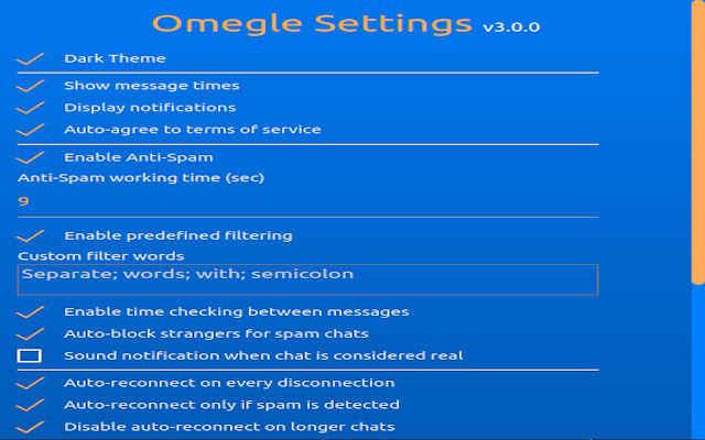 反垃圾邮件、自动重新连接、黑暗模式、欢迎信息和更多选项,让您在 Omegle 享受更多乐趣!