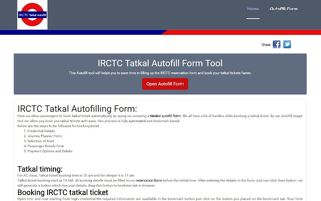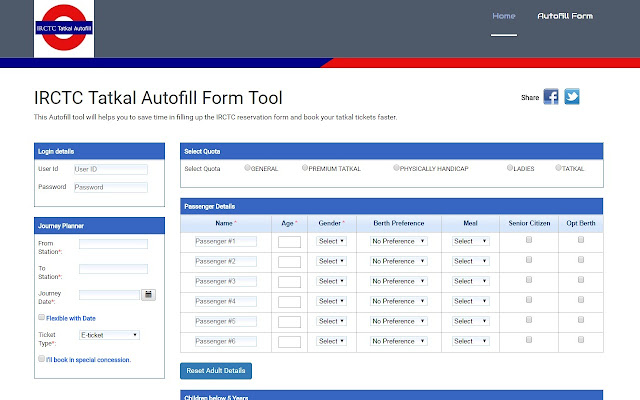 Irctc Tatkal 自动填充工具可帮助您更快地预订 IRCTC Tatkal 门票。