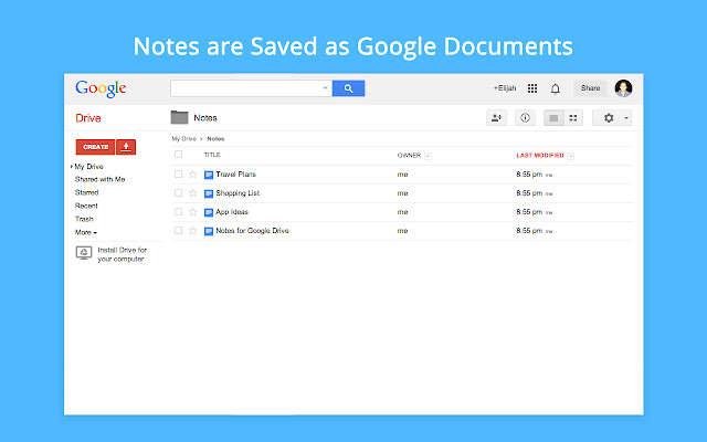 在 Chrome 中轻松创建笔记,这些笔记会作为文档自动同步到您的 Google Drive 帐户。