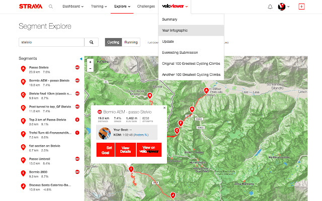 - 指向整个 Strava 站点的 VeloViewer 细分详细信息页面的直接链接。