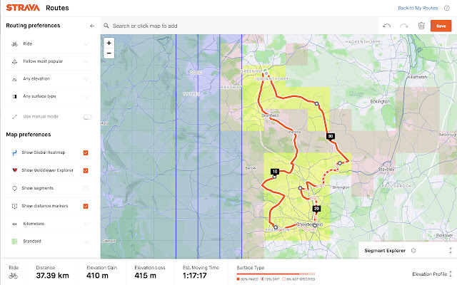 1.25 - 重做 Explorer Tiles 以与新的 Strava Route Builder 配合使用。按路线勾选的新图块现在突出显示。在 VeloViewer 的活动页面上的地图设置中配置磁贴颜色。接下来我会尝试再次显示个人热图。