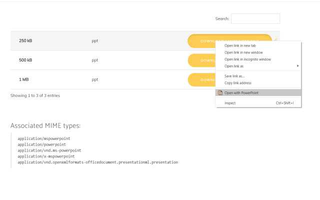 通过右键单击上下文菜单按钮,选择要使用 powerpoint 查看器打开的 psentation 链接/pptx 文件。