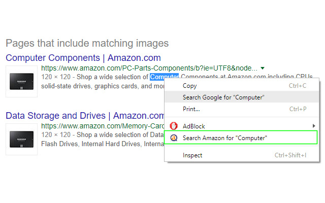 通过您在任何网站上随机找到的任何关键字或图片搜索亚马逊,您只需右键单击即可。