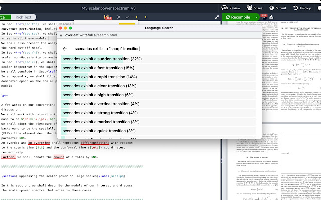 需要 Overleaf 中全面可靠的语言工具,超越语言检查并根据科学写作的需求量身定制?不要再看了。这个扩展不仅在你的 LaTeX 源代码中提供了全面的语言反馈,而且还为你提供了你需要的单词和句子。