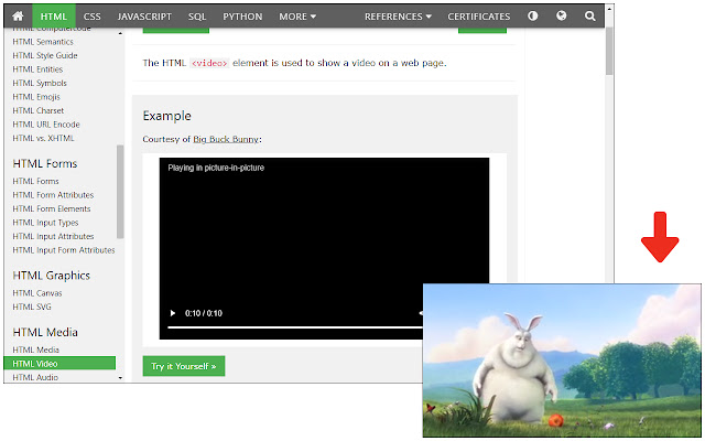 注意:请先播放视频,然后单击工具栏按钮使其弹出。暂停或停止的视频元素不会响应弹出请求。
