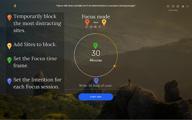 - 使用计时器选择 1 到 90 分钟之间的任何时间来阻止您最分散注意力的网站。