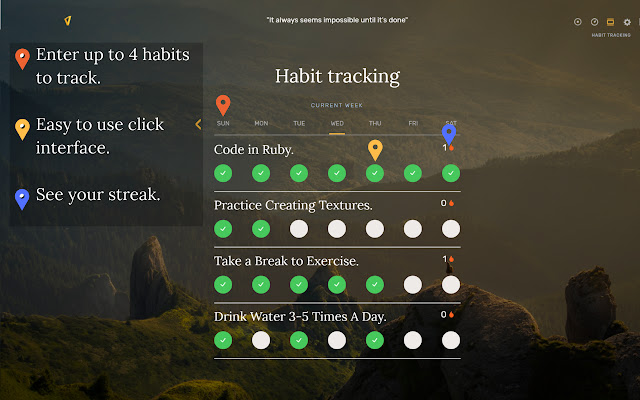 - 每天检查您的习惯,并查看您的连续记录,以保持您朝着新的、健康的做法前进的动力。