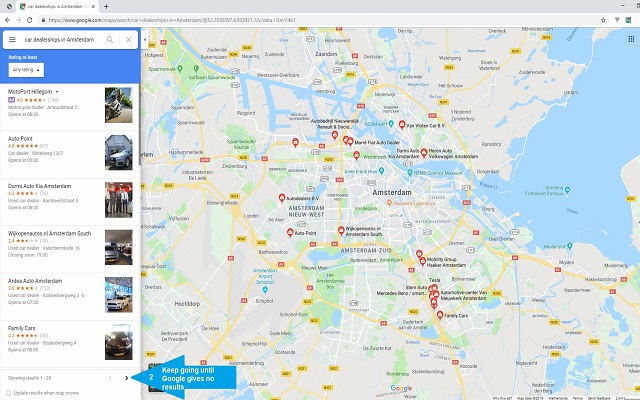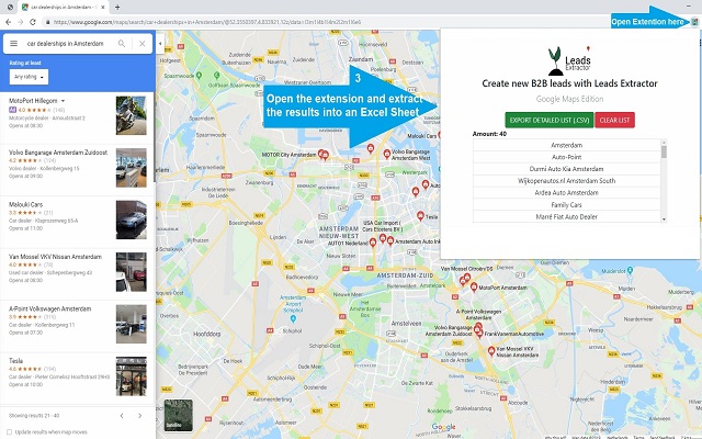 您所要做的就是像往常一样使用 Google 地图,而扩展程序会在后台自动抓取商家列表 - 准备好在您打开扩展程序时下载。