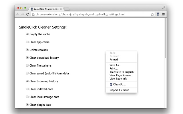 * 您选择点击时要清理的内容(请参阅“选项”页面)