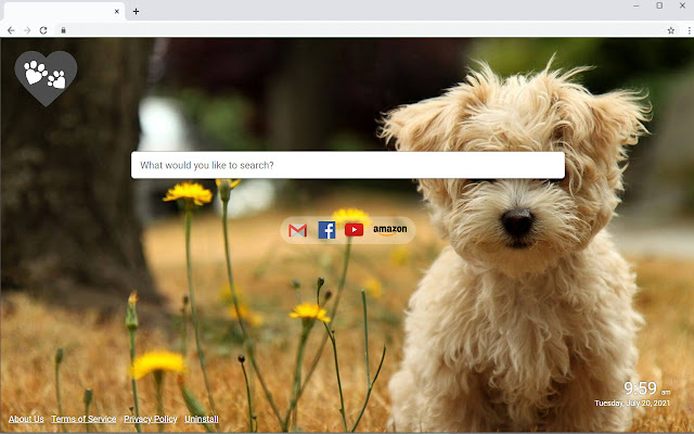 在每个新标签中都有一个可爱的狗背景。