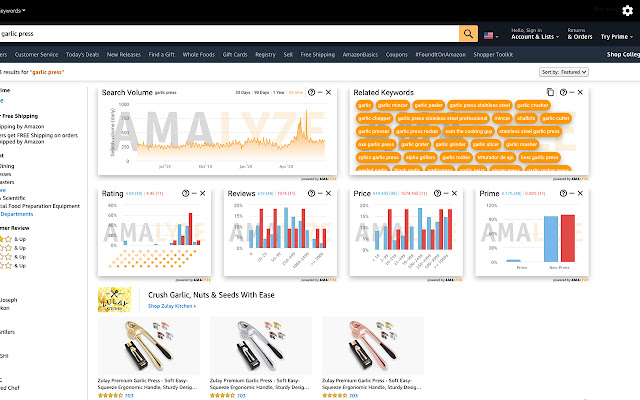 检查您的列表和 SERP 并查找新关键字的简单方法。 AMALYZE Chrome 扩展程序为各种市场、FBA 自有品牌卖家和供应商提供了一系列工具。