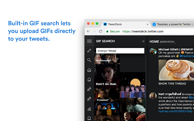Tweeten 与 TweetDeck 配合使用,这意味着它提供了一个强大的、基于列的界面,可帮助您跟踪 Twitter 上发生的所有事情,而无需点击刷新按钮。 Tweeten 增强了 TweetDeck 设计,以提供更清洁和直观的体验。