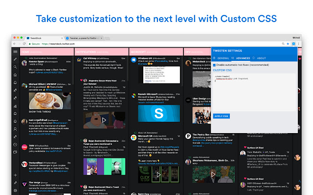 Tweeten 允许您自定义 TweetDeck 的所有重要部分,并且您可以使用自定义 CSS 更进一步。