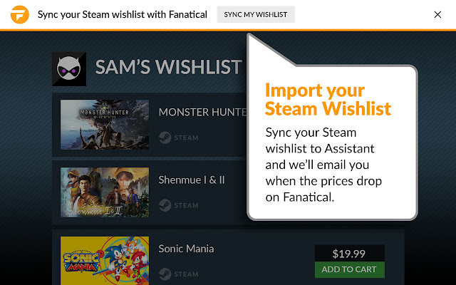 - 将您的Steam愿望清单同步到Fanatical,因此您不再错过任何划算优惠