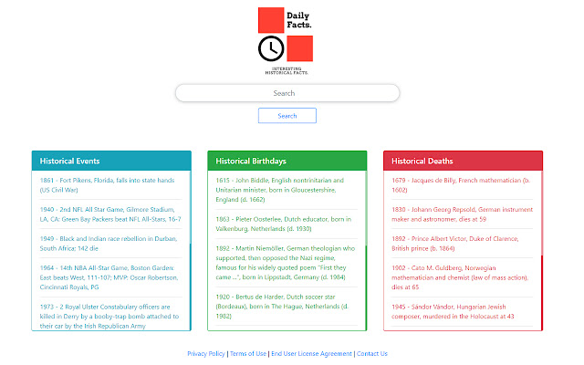 Daily Facts 新标签扩展使您的浏览和搜索变得有趣而有趣!了解历史上今天发生的事情,谁出生,谁死了,并轻松地在网上搜索任何其他信息!