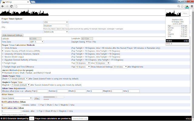 基于具有许多可定制功能的 islamicfinder.org 的准确祈祷时间计算