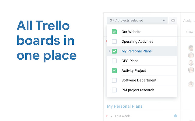 在甘特图视图中,您可以看到您的 Trello 帐户的所有图板及其任务。你也可以禁用你想要的。