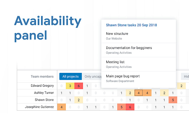 注意您的团队成员的负载,并使用检修面板在他们之间均匀分配负载。在任务数量和每天的工作小时数之间进行选择。