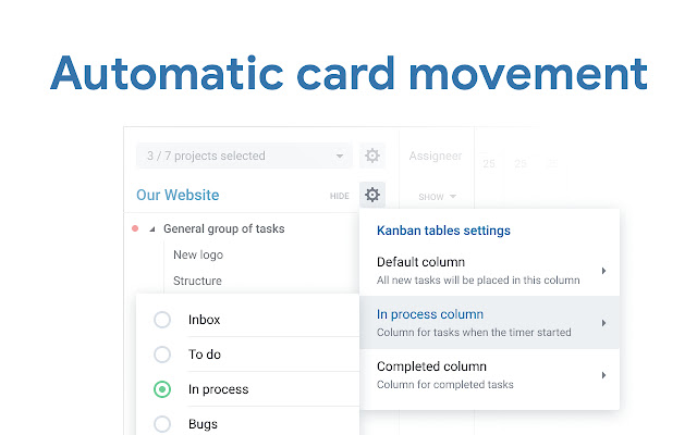 如果时间跟踪器开始按任务跟踪时间,它会自动移动到该列。