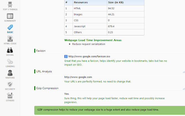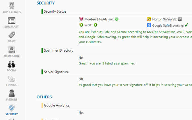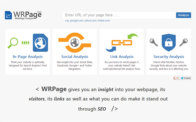 通过深入信息、社交统计数据(如 facebook 和 twitter)、链接分析和网页的安全配置文件获取页面内 SEO 分析。