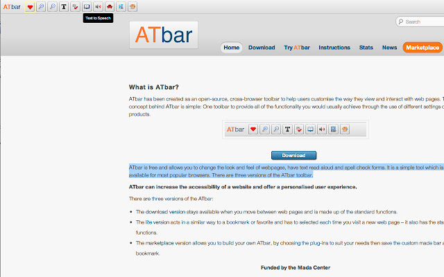 ATbar 是免费的,允许您更改网页的外观、朗读文本和拼写检查表单。它是一个简单的工具,可用于大多数流行的浏览器。 ATbar 工具栏有三个版本。