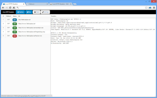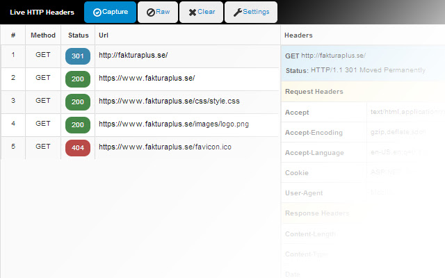 此扩展程序向您显示发送到服务器的所有标头以及返回的响应。它不会像其他一些扩展那样发出第二个请求。我实时捕获的所有 HTTP 流量。