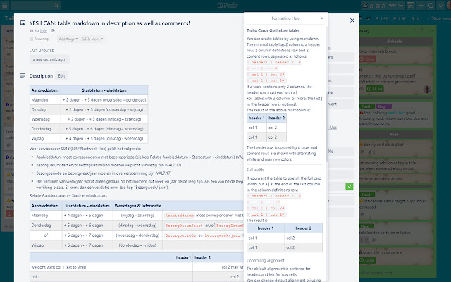 表格降价在 Trello 的格式帮助中有解释,只需单击该按钮并向下滚动即可!