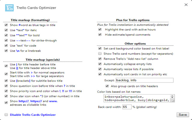 结合删除添加新列表列、标题中的可点击超链接、没有卡片的折叠列表等生产力功能,它是必不可少的 Trello 增强功能。