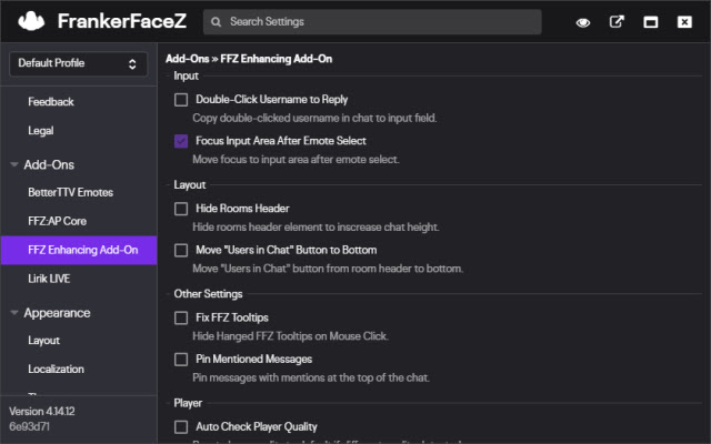 要使此扩展程序正常工作,您首先需要从 https://chrome.google.com/webstore/detail/fadndhdgpmmaapbmfcknlfgcflmmmieb 安装“FrankerFaceZ”