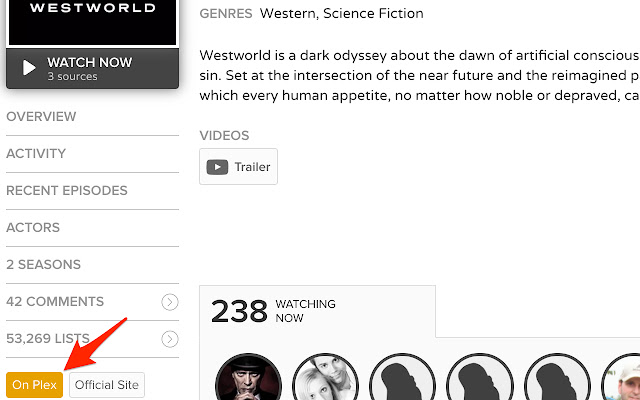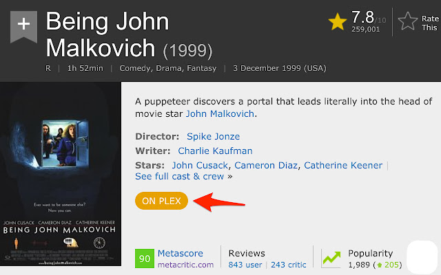 在各种电影和电视节目网站上添加一个按钮以在 Plex 中打开它。