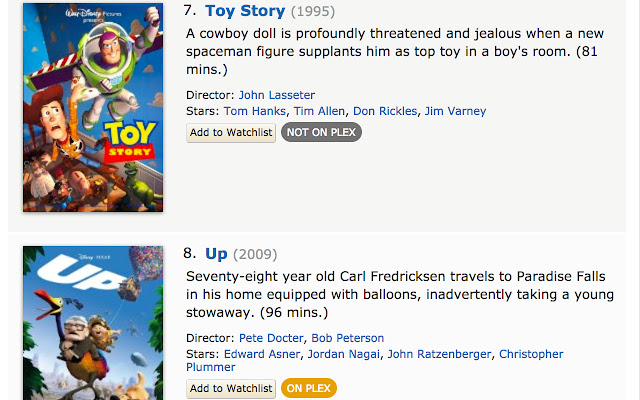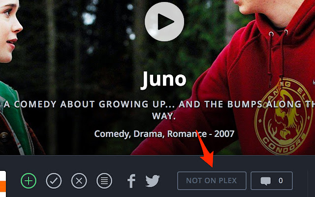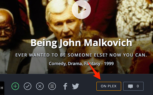 如果您的 Plex 媒体服务器上不存在电影或节目,则该按钮将在视觉上被禁用。如果您在选项(可选)中设置了 CouchPotato 或 Radarr,它可以一键将电影添加到您的媒体收藏中。如果它已经在 CouchPotato/Radarr 中,它会轻轻地让你知道它的状态(所以电影不会被添加两次)。