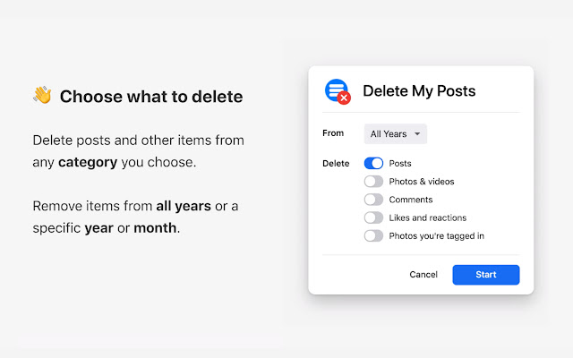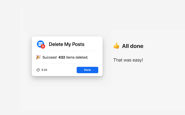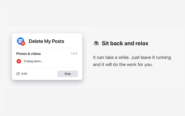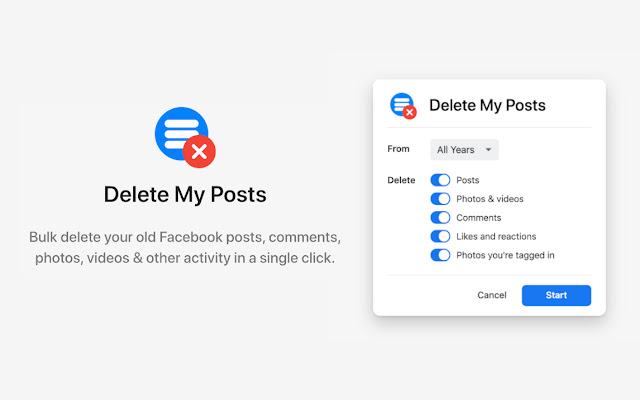 删除我的帖子使从时间线、个人资料和历史记录中批量删除旧的 Facebook 帖子和其他活动变得快速而简单。