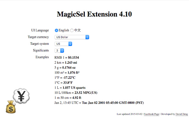 如果你经常关注国外新闻、喜欢在国外网站上购物或者喜欢看各公司的财报,但是你对于美元、欧元、华氏度、英尺这样的单位没有感觉,每次都需要心算一下做转换,那么你应该安装这个扩展!